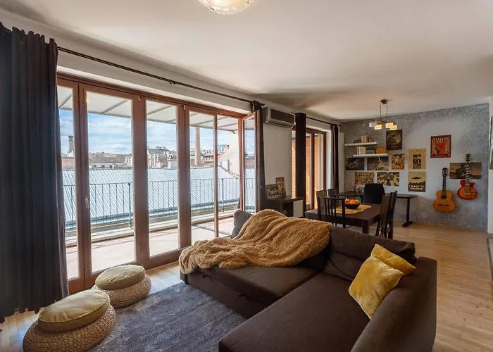 Nestled in the 07. Erzsebetvaros district well-known by historical sights like Fisherman's Bastion, set about 10 minutes away by car, the 1-room Sunny Penthouse Front Of Szimpla Kert Apartment features a storage room. This spacious apartment with a terrace is located at a 450-metre distance from the lavish Moorish-style Dohany Street Synagogue.